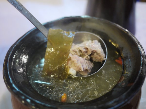 【排骨海带汤】这个超级实惠啊!很多排骨的说,不说别的,就是29的套餐只有这一份汤也值回票价了!更何况这汤原价38也不算贵,所以原价来吃也还是比较合适的~~料很足味道很不错,因为不方便打包,所以我几乎后来就光吃喝这一个就饱了~~