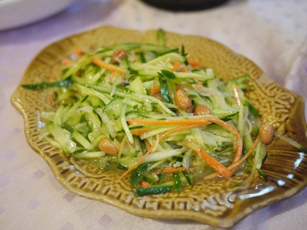 【素三丝】说是三丝但是我觉得不止三种呢。。。有黄瓜丝胡萝卜丝粉丝还有豆芽,这个是我比较喜欢的菜哦!味道很清爽,稍微有点点甜但是不明显,很提味,而且花生很香哦~~