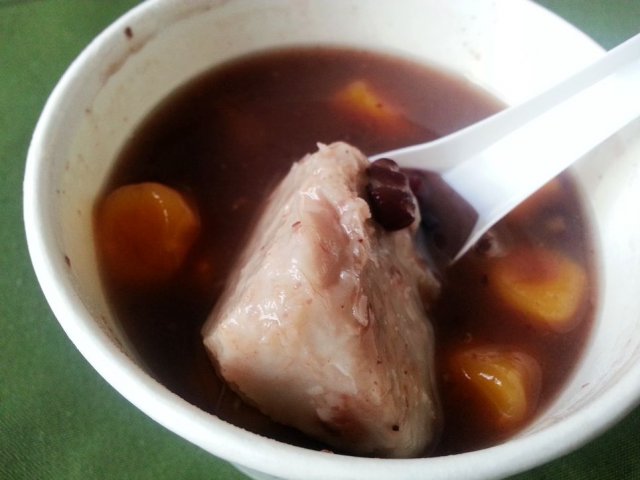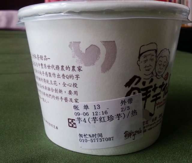 要了芋园四号 里面有我最爱的芋园球,颜色分为黄色的和白色的,但是味道都一样的,都是味甜的口味,而且弹牙的口感很爽,让人欲罢不能, 超级好吃,因为天气凉了,所以没有要冰的,而是选择了热的,所以说没有冰,热的很特别,是红豆汤打底,里面还有很多红豆,和双皮奶上面的红豆粒似的,红豆细腻绵软,入口即化,甜甜的,最特别的要说里面大大的两大块香芋了,虽然看着巨大块,但是特别的绵软入味,超级惊艳,吃完一份瞬间饱了 ,这个原价应该是20块钱。