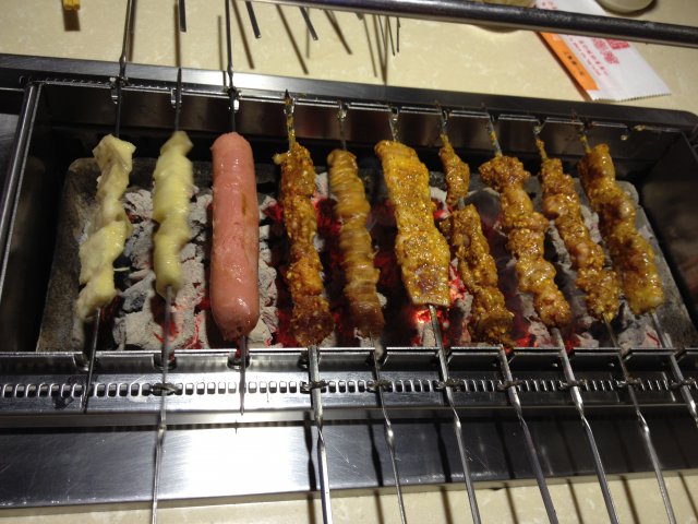 这里每桌都有一个自动烤炉,串都是自己动手烤,很有乐趣~服务员态度很好,很有耐心,经常过来巡视一下有没有烤糊的。