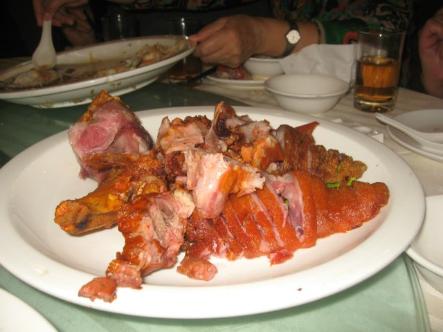 美味蹄髈,这个也是个管饱的大菜,不吃皮,挑了点瘦肉吃,蹄髈肉靠骨头的最好吃莱。