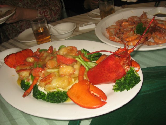 上汤伊面焗龙虾,龙虾的个头不小哦,六百九十九的团购能吃到龙虾么,也不能多高要求,应该是冰冻的吧,不过肉质吃起来还不错,蛮弹的。