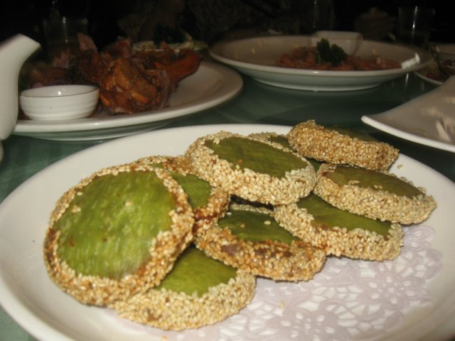绿茶饼,套餐里是十个,我们多了两个人,特地再加了两个,热腾腾出炉时最好吃了,馅儿很细滑,也不会太甜,灵的。
