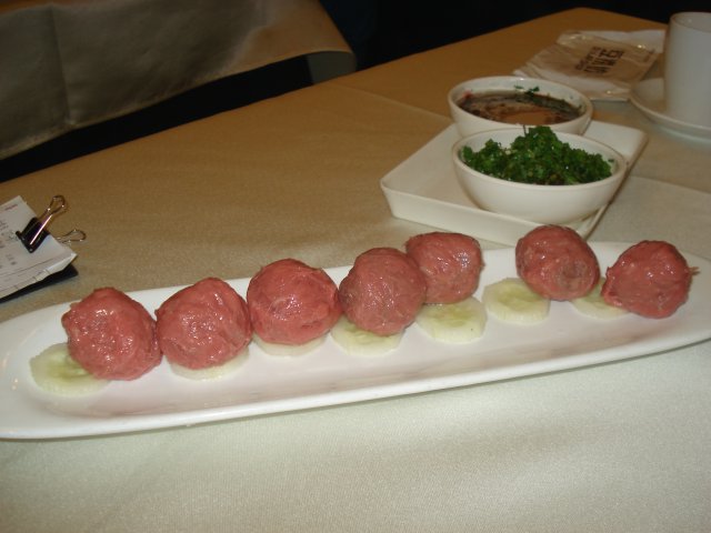 撒尿牛丸,这个是朋友一定要点的啦,肯定是想到了电影食神啦,每个丸子都垫在一片小黄瓜上,牛丸里头有一小点空隙,放了汤汁,不过那汁水也没啥鲜的,就是起到个“撒尿”的效果,我觉得一般。