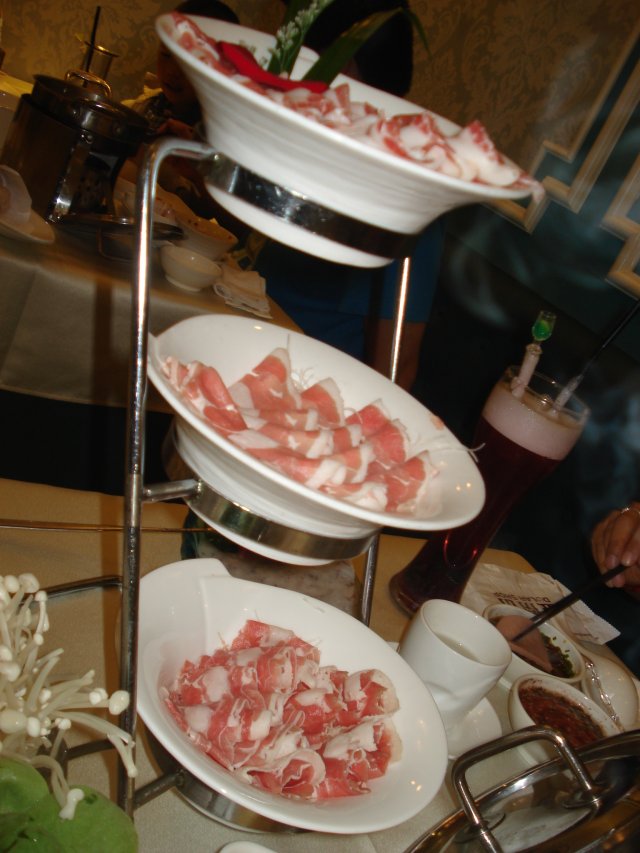 牛羊肉组合,一直觉得这架子摆得挺有气势的,感觉有好多东西,其实每一碗里头都只薄薄的上面一层,下面是粉丝。我不是很喜欢吃羊肉,牛肉的味道还不错。