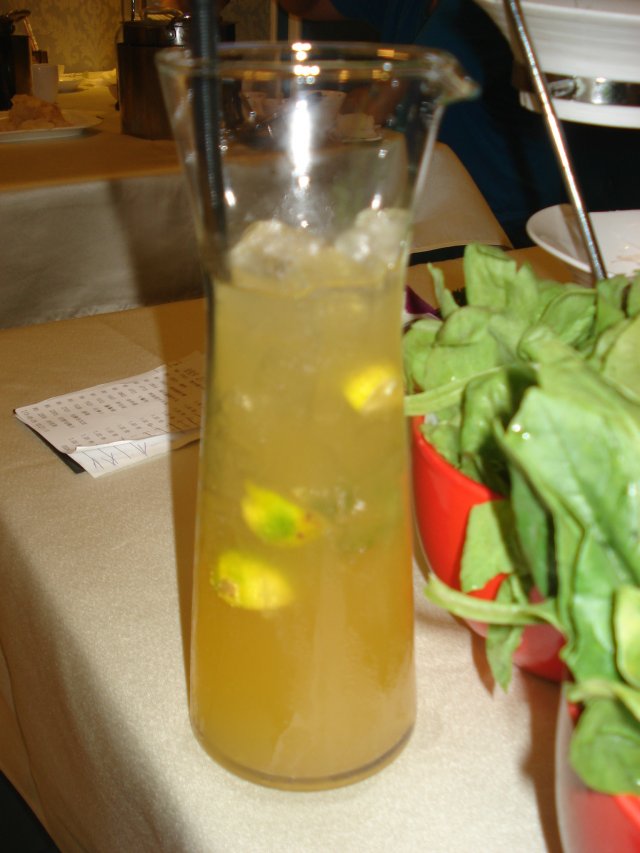 饮料,点了一个乌梅汁,一个冬瓜马蹄汁,还有一个冰桔茶。我喝的是冰桔茶,不太适合我的口味,我觉得太甜了。