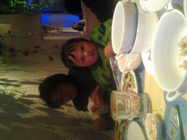 一家老小很多人,好像8个左右吧,召集起来去吃自助餐,也是微信的活动,这家是酒吧式的自助餐环境,布置的蛮好的分上下两层,菜品不多,但是够吃,大众化的就不介绍了,比较有特色的是德国啤酒无限量畅饮,有黄啤和黑啤,刺身有三文鱼,北极贝,金枪鱼,这个是要按人头发的,比较薄但是很新鲜,他家的酱油很纯正,好吃。最难忘的是罗宋汤,很特别,里面的料很多,都不是汤了,全是菜,煮的很烂宝宝也能吃,还有一个南瓜粥是用蘑菇汤那种做法做的,西餐口味,很香甜,里面还有芝士的口感.环境是最喜欢的地方了,走廊地上是透明的布景,里面有海底白沙和海螺海星,宝宝就喜欢在上面跑来跑去的,晚上九点之后还有乐队来唱歌,酒吧都不用去了呢。