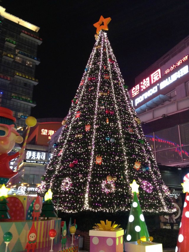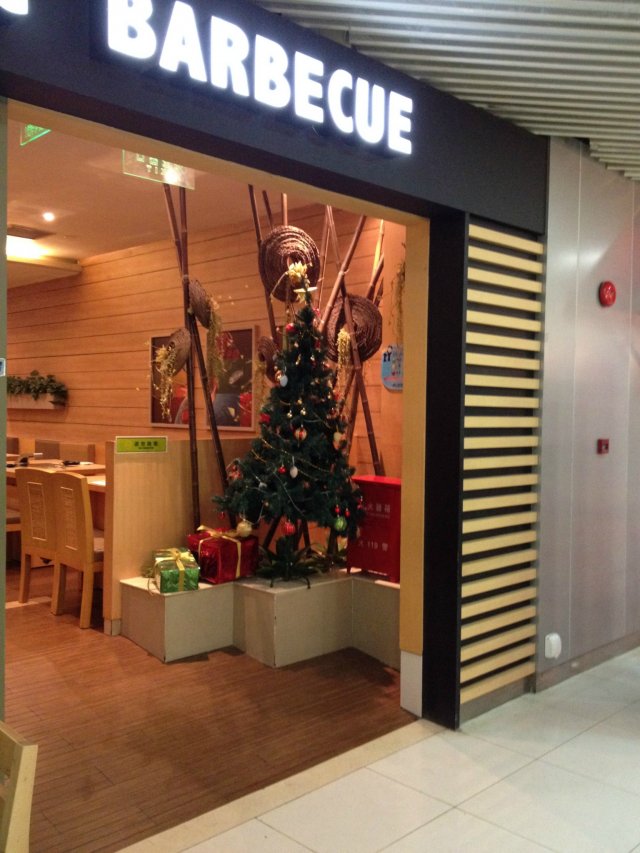 大家约在大润发的西贝西北菜碰头,从大润发上去5楼,都是饭店,好热闹,好几家饭店门口都布置了小圣诞树跟小礼物,还有小装饰,个个都漂亮~跟叔叔阿姨们吃饭不太敢放肆的拍照,只能稍微偷偷的拍了几个菜,由于人很多,我们点了好多好多菜。