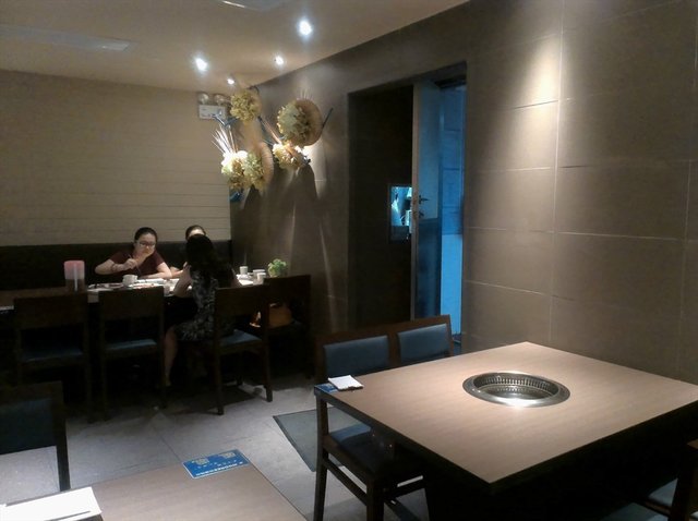 这家烤肉店,在汇金百货B1的美食广场内,半开放式的格局,虽然是吃韩式烤肉,但是装修上完全没有韩国的感觉,倒是有些小小的时尚感。
