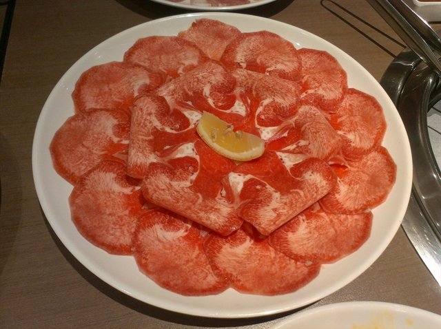 肥牛很新鲜,也很厚,上来的时候盘子里面还有很多的酱料让肥牛浸在里面一直入味,放入烤盘里面和烤牛排一样啊,这个牛肉要多烤一会儿,烤完之后很嫩,如果喜欢老的可以多烤一会儿,牛肉的口感还是不错的。
