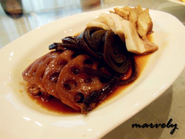 莲藕、海带丝、豆腐干组成的卤菜,酱香味很浓,不知道是不是因为有海产,竟然还能吃出点海鲜的鲜咸味道。