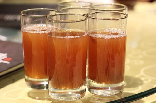 自制酸梅汤:拿上桌你就会发现,这绝不是勾兑出来的,在瓶子的底部可以清晰地看到被打碎的酸梅。颜色鲜艳,酸甜可口。