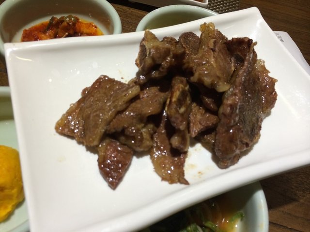 这家坦坦大炉韩国烧烤店位于成府路35号东源大厦4层, 住在五道口的小伙伴们就是幸福, 不用跑到韩国就能吃到地道韩国烤肉。 为了吃到他, 我们是专程跑过去的, 故意岔开了饭店去, 没有排队, 还是挺幸运的。 小菜的种类真是多啊, 比较有影响的是他家的南瓜汤、土豆泥沙拉和炖牛肉。 LA牛排是必点的, 牛排肉实在是太嫩了, 两个人的话点一份真的有点少, 因为大部分都是骨头。 烤鱿鱼也很赞, 是把整只鱿鱼拷完后再切, 事先腌制过的, 非常的好吃, 是咸甜口的。很满意的韩国烤肉店, 以后还要再来, 6人以上还可以提前预约。