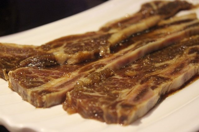 点的推荐的洛杉矶牛排和王猪排,牛排已经腌制过了,甜甜的,很喜欢,白嘴吃也没问题