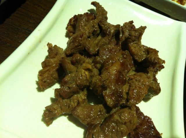 没想到牛五花肉和排骨肉都不用自己烤,烤好端上来,开始还觉得是不是点多了,后来发现肉真的好少