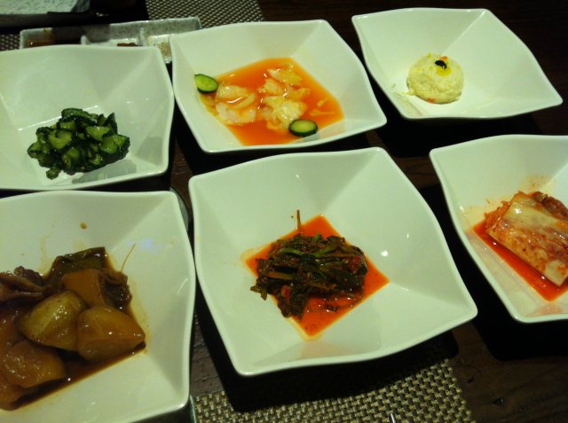 上来先是几个大碗把台面都摆满了,有泡菜还有土豆沙拉什么的,赠送的海带汤吧还有南瓜粥啥的,光吃这个怕也吃饱了。