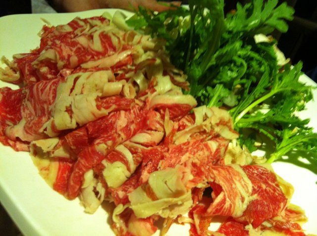 牛五花肉50元,这个我很喜欢,主要是肉很嫩很薄,吃起来很香浓,恐怕也是我饿了吧,朋友喜欢拌蔬菜,我就喜欢空嘴吃肉