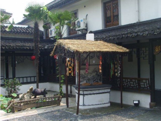 环境真的很古色古香,有种回到农村的感觉,有灶头,有小桥流水~一楼的大堂还有轿子~蛮嗲个~城市人偶尔也要回到农村,体验一把的~