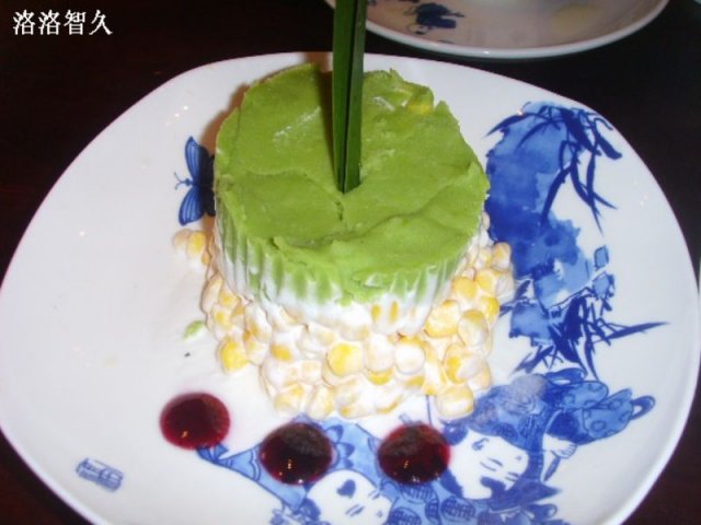 农家素糕,冷菜,上层豆瓣酥,下层是玉米粒!这道菜绝对属于点的失败(不是偶点的,属于洛爸被服务员忽悠了就点了!)