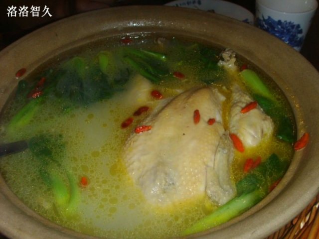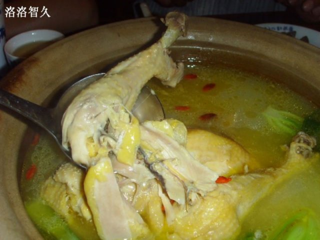 土鸡汤,鲜的来~~但鲜的不是很腻,淡悠悠的感觉~不错,推荐记!!!8过,鸡已经没什么味道的,精髓都入汤里了!!!