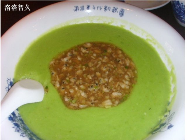 海瓜子豆瓣酥,这道菜就是噱头了,第一勺味道还是不错的,吃多了也就这样的,绿色的豆瓣酥看上去很诱人,色译是吸引人的,但味道一般般!第一次还是可以吃吃的,但如果再去的话,直接PASS掉!