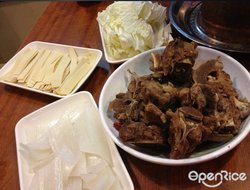 在一个挺偏的地方,找了好久,店面不大,但还蛮干净的,因为去的晚,特制奶茶没有了,只能下次来品尝了,点了一个羊蝎子火锅,他们用的是北京的那种铜锅,其实我觉得这个又占地方,还放不了多少菜,也没吃出来味道有什么特别的!羊蝎子的量还蛮大的,而且上面肉挺多,也很新鲜,反正2个人吃光是蛮撑了啦,锅里本来就有白萝卜,羊蝎子搭配白萝卜,总归是最好的组合了,不过白萝卜要等中间或最后吃才入味,烂烂的很鲜,点了一些其他的蔬菜当配菜,类似金针菇啦、粉条之类的,这个也没啥好点评的,进了火锅味道都一样!