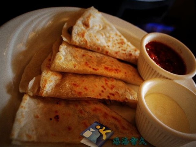 土豆蘑菇馅墨西哥芝士馅饼端上桌的时候是热热的,一定要趁热吃,里面的cheese吃口蛮浓郁的,不腻口,配着土豆蘑菇馅,味道不错,很香~外层的饼皮很有韧性,有嚼劲~沾着酸奶酱吃蛮嗲额~