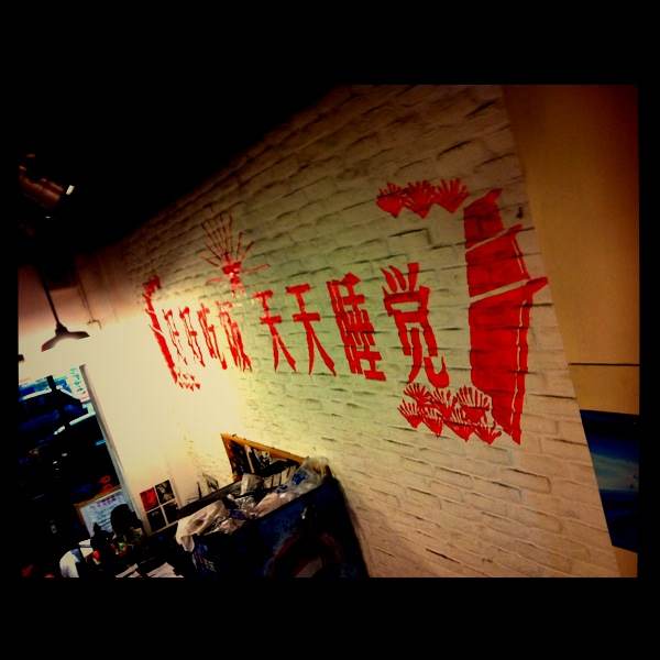 店铺的装潢比较有个性,到处是50、60年代的口号和图片,甚至于还有老毛的画像和标语,俨然一个文化大革命时代~~这里的占地不大,但有2个楼面,没有包房,最多可以容纳8人的座位~~