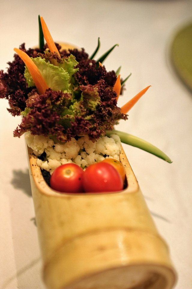 持续的高位让人头晕不适,这时候最想要的就是吃的健康吃的清爽,现在的人也越来越注重不牺牲口感下的饮食的健康。而这次开饭喇带我们来试吃的店家正是有着如此餐饮理念的店家,说是老板觉得吃的不卫生,做出了水平做出了情怀,虽然现在大家都知道健康饮食,但素菜馆不是抱仿荤菜的大腿,做成红烧肉的样子,鱼的样子,真是惟妙惟肖,但热量比荤菜还高,要么就是口感味道不好,鲜有人问津,所以没来餐厅之前还是有忐忑的感觉,兴奋又有点担心,兴奋的是很高兴抽中了开饭喇的试吃,可以吃到美食见到老朋友,担心的是不知道这样的健康菜是否好吃,进了餐厅,感觉非常好,有相当多有噱头的特色菜,火烧的海螺,南乳的东坡肉,巾绞的紫薯球、马桥的豆腐干。各有特色,而且味道异常鲜美。吃的放心吃的满意。