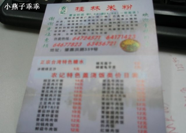 外卖午餐随便吃吃! 小燕子乖乖等級42013-05-2310 瀏覽 關注 前公司附近叫外卖的店,也去过店里,店面很小,还算干净。里面的服务员属于很木的那种。叫外卖的电话很多,但忙的时候你是一个也打不进去的,要么就是没人接,而且什么下大雨不送什么的,一天世界,速度也是越来越慢了,要等上好半天才会送来,受不了! 东西味道还可以吧!价钱比我家门口便宜一点点。不过酸辣笋尖的笋很老,不好!现在叫的比较少了。他家还有粥,炒饭,甜品等等,还不错的,价钱不便宜啊!但是选择在桂林米粉里已经算多的了。以上食評乃用戶個人意見 , 並不代表OpenRice之觀點。讚好分享外卖午餐随便吃吃! 农记桂林米粉 https://s.openrice.com/KtbT100zyc1G0檢舉 張貼 評分3味道3環境2服務3衛生3抵食