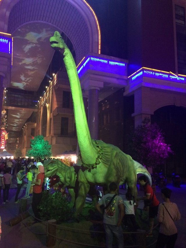 靠近门口的地方还有几只大恐龙的摆设 一条街上还偶尔能碰到蓝精灵的摆件 萌萌哒 好多人围着照相