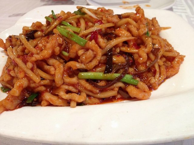 鱼香肉丝,口味偏甜,吃多了有点腻,笋丝放的不少,肉也很嫩。