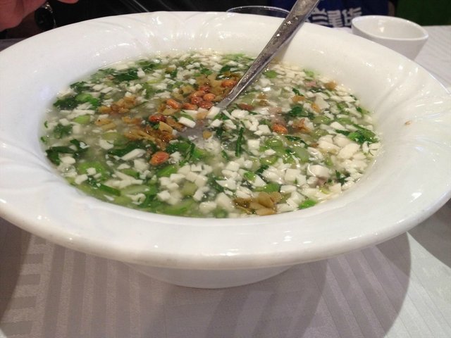 豆腐蔬菜汤,感觉不是特别热,温温乎乎的,味道一般,貌似里面还有点肉末,不喜欢,还是纯素的可能好喝一些。