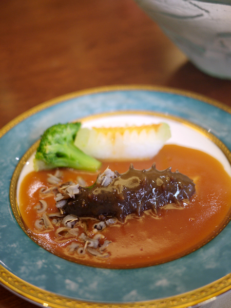 【野米鲍汁扣辽参】鲍汁很好吃,觉得海参没入足味,但是我就是爱吃海参就是爱吃啊!鲍汁坚决不能浪费,于是我特意要了一碗米饭搭配。同行的人说这么多好吃的别吃米饭占地儿啊,但是真心是不用鲍汁拍点饭心里总觉得亏呀,哈哈~~野米就是用的美国的黑米,我吃着没什么感觉