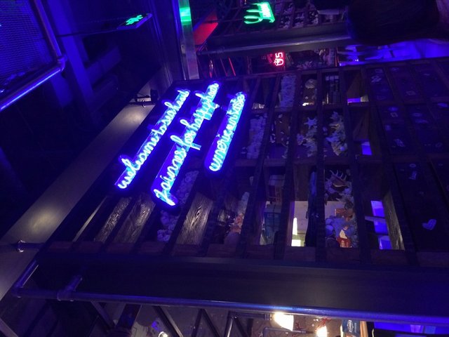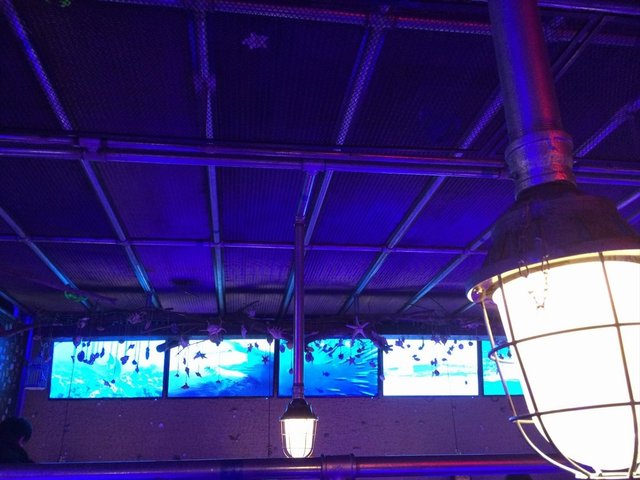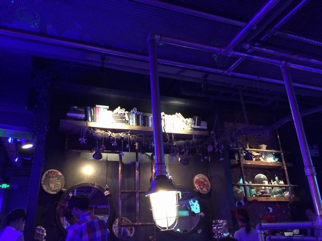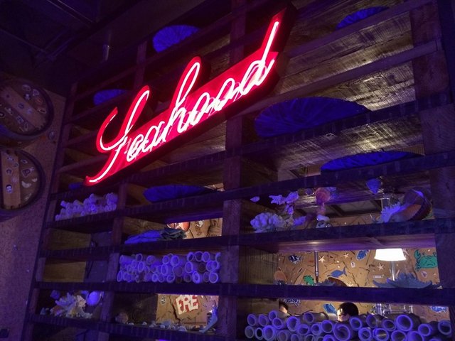 环境很有意思,有点偏夜店的感觉,灯光比较昏暗,内饰装修以海洋生物为主,服务员的头上也戴着螃蟹的头饰。