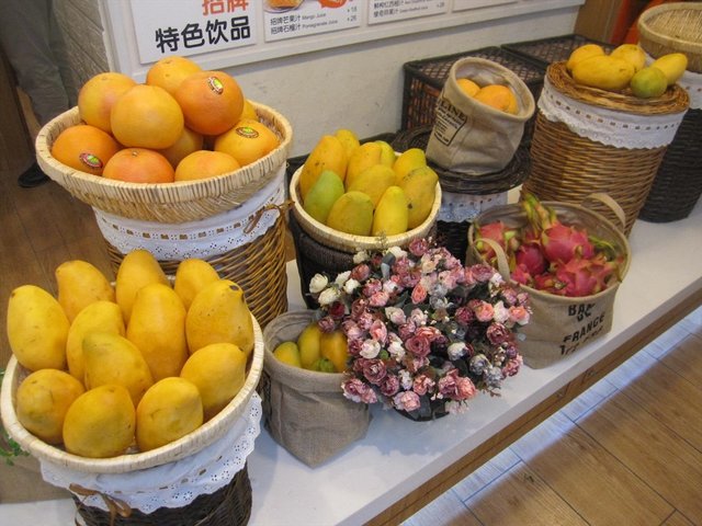 我好喜欢这里的摆设,都是真实的特别新鲜的水果,看着就有食欲。特别真实的摆设,让人对于做工也是相当放心。小小的桌椅摆放,芒果的季节开始啦,每个月份都有新出的水果。鲜芒捞里面的珍珠还真是颗颗粒粒,真芒椰层次分明,下面有椰奶和酸奶的区分,如果想多吃水果,来份什果微捞尝一下多种水果,最最爱的就是榴莲酸奶,特别浓郁的味道。特别好喝的饮料,下次绝对还要喝