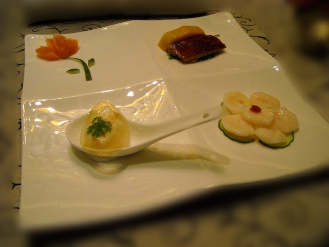 萝卜卷体现了厨师出色的刀工 外面包着的白萝卜 切的呈透明色 酸酸的口味 很开胃