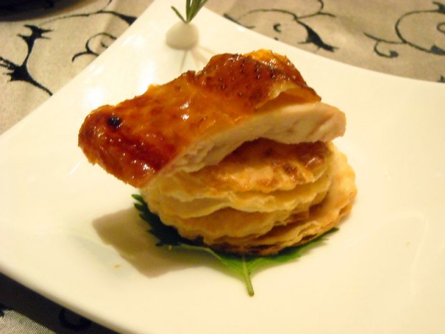 这个鸡口感很不错 下面配的酥皮也体现了港式的特点 鸡肉外脆里嫩 香气扑鼻