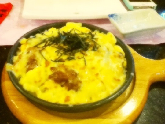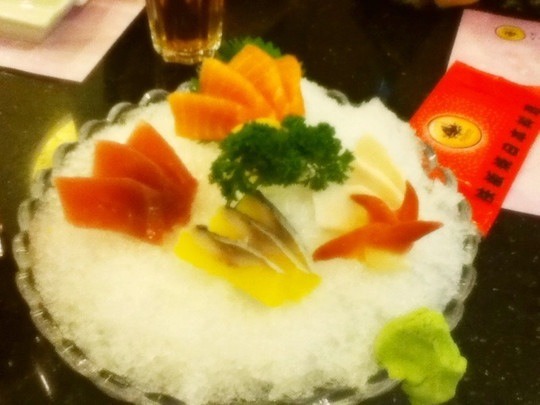 昨天和弟弟妹妹姐姐们逛好街就一直在纠结吃什么结果还是决定打车从人民广场到日月光去,兜了一大圈还是下不了决心,结果弟弟说请我们吃大渔,但是那个时候已经是晚上八点多了,所以我们没有选择自助,现在他们自助是168每位,然后我们都点了自己要吃的,结果我们得出个结论就是这家大渔属于又贵味道又非常一般的,烤的生蚝他们放了芝士感觉不好吃,而且要十元一个,最后还浪费了一个,妹妹点的炒乌冬还可以,但是色面不太好看,没放酱油,铁板鸡排味道非常的淡,我点的热荞麦面也很一般25元的价格,里面基本都市素菜,姐姐的小披萨饭下面的饭是有点冷的,还有50元的一人份刺身拼盘也还好,不够厚!但是四个人吃了三百多基本也都吃饱了!