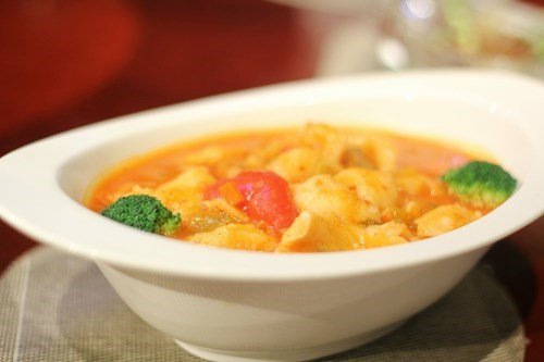 罗宋酸汤鱼 来自欧洲大陆俄罗斯的美食罗宋汤和贵州的酸汤相比增添了更多的味道,同是西红柿作为主要的调料来制作的美食。鲜嫩洁白的龙利鱼,配上有牛肉和蔬菜制作的罗宋汤,味道酸甜可口,色泽鲜艳诱人。