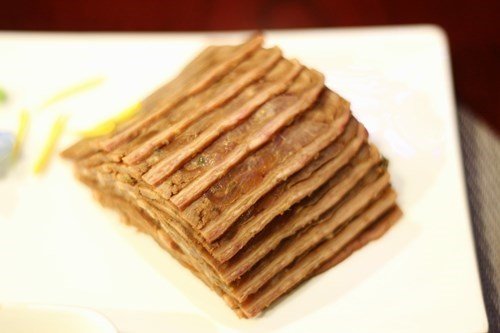 罗汉肚:因形似罗汉的肚子而得名,层次分明,晶莹剔透。猪肚、猪肉、猪皮紧实的压在一起,色泽鲜艳、口感爽脆、味道鲜咸味浓,回味悠长。