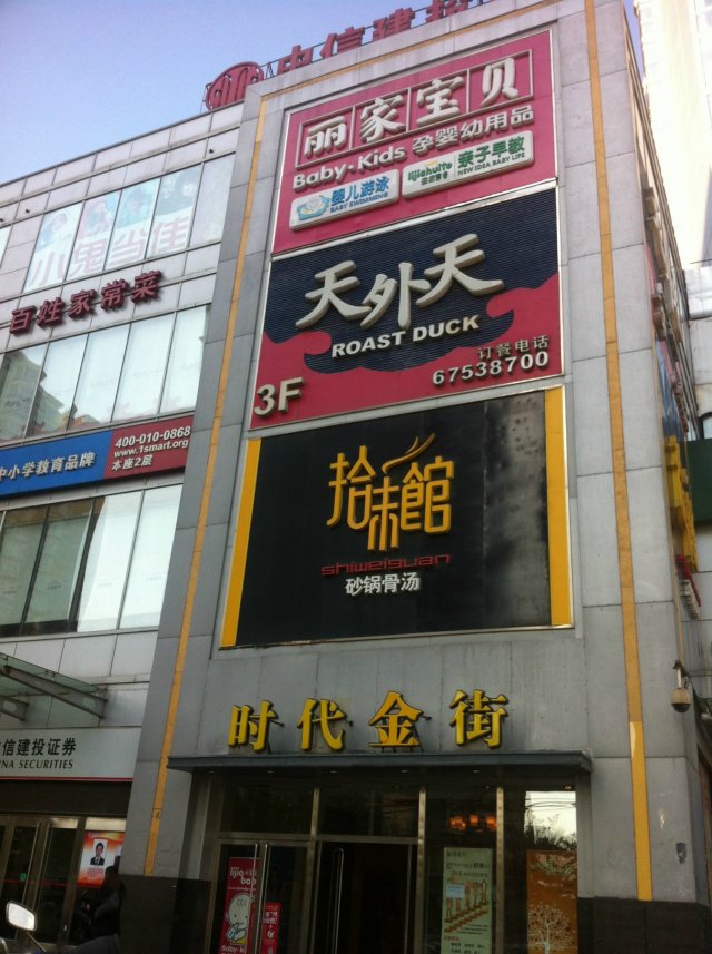 天外天烤鸭 christine716等級42013-11-0726 瀏覽 關注 这家店在丰台区马家堡西路15号时代风帆大厦3楼, 近地铁4号线角门西站A出口。 天外天的分店大多都开在南城居多, 北城几乎没怎么看见过。 烤鸭味道还是不错的, 价格也比很多烤鸭店都要便宜, 一份128元, 还返券。 但是菜品种类不多, 不是很吸引人。 朋友还点了 粉丝娃娃菜和咸蛋黄焗南瓜。 口感稍微有些偏咸, 服务员素质普遍较差,上菜速度比较慢。 以上食評乃用戶個人意見 , 並不代表OpenRice之觀點。讚好分享天外天烤鸭 天外天烤鸭 https://s.openrice.com/KtbT1m0kpS800檢舉 張貼 評分3味道3環境3服務3衛生3抵食