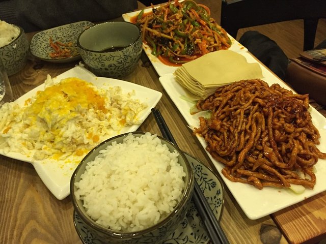 一进店就华丽丽的各种拍照消毒,老板给上菜一直在躲我的镜头,走到另外一边时我手机也跟了过去,两头堵,哇咔咔。不巧的是肉龙刚刚售罄,想点的软炸里脊也卖完了,就临时点了几个下饭菜。
