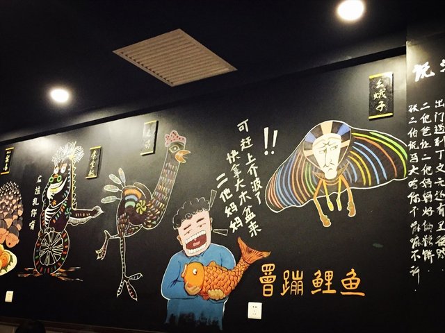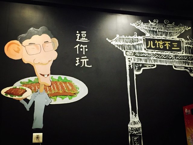 店内装修比较简洁,津味菜肴为主打,四大神兽的墙画还挺有意思的,估计外地人来了都难以参透。自带饮料,要了两个杯子,消毒柜里拿出来的,还是温热的,看着很透亮。