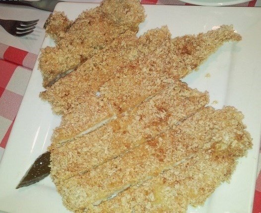 超级无敌大的一块,肉很不错,炸得火候刚好,很松脆!配的是辣酱油但小菲不爱,特地要了番茄酱,太惊喜啦~还是我们小时候吃到的味道,真不知道他们那里弄来这么原汁原味的东西,让我一下子就对他们家的印象好起来…只是量太大我们吃不完~