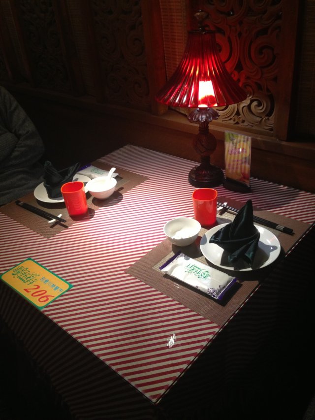 这家的装修是走民族风的,非常的有特色,很有情调,湿巾并不免费,但服务员会提醒。