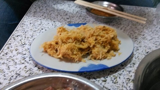 茧蛹,拌的油和洋葱,一盘很少的几个,但是非常新鲜,都是活的,这个建议烤的时间要长一些,我烤的比较嫩,自己加的干料吃的,味道非常鲜,但是晚上回家发现过敏了,所以要小心。