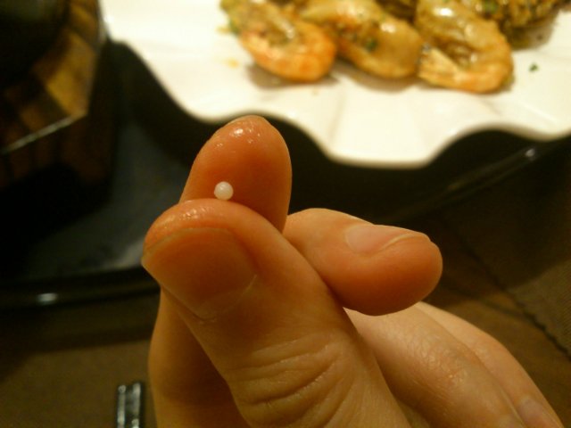 妹妹吃某个贝壳类噶吃到粒小珍珠~