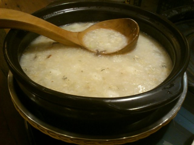 跟住上来噶系冬瓜鱼蓉粥,40蚊,妹妹话系倒数第二便噶粥,最便噶系白粥——30大洋~