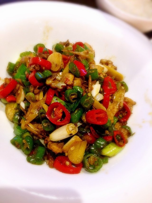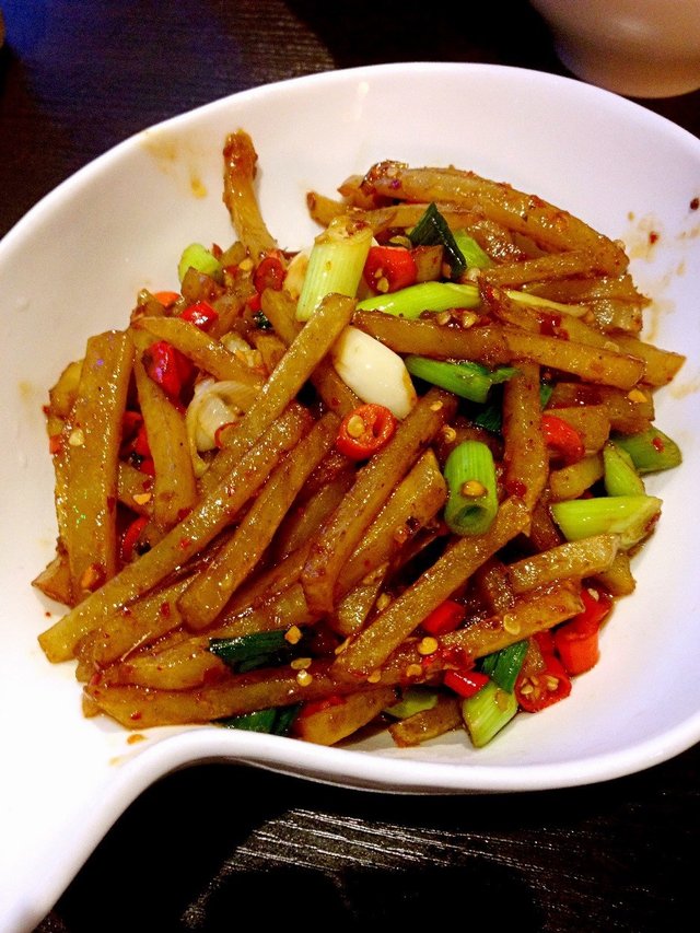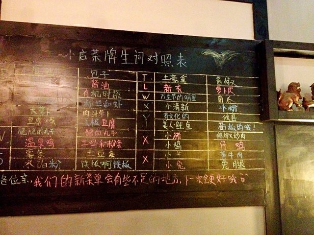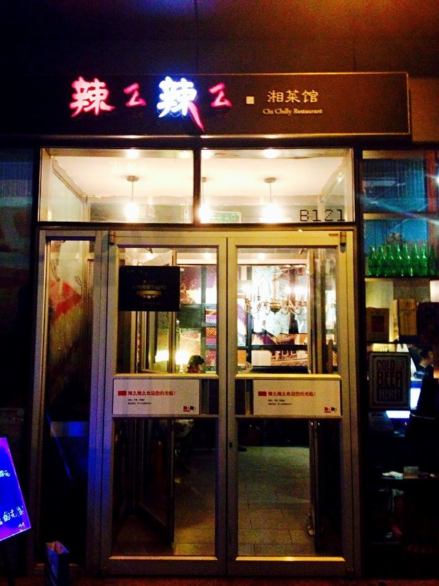 环境有点混搭风,里面小台灯小装饰都做的很小资情调,但是落地窗户弄了好多霓虹灯闪啊闪又觉得有点不搭。。用了点评发的50块钱券,和朋友点了两个菜。湖南人的土豆条?好像是叫这个名儿吧,好吃啊!土豆过油虽然很不健康,而且好辣,但是有点欲罢不能。还点了个小鸡快跑,就是小炒鸡肉那种,不太满意是鸡肉太碎太少了,就是在一堆辣椒里面翻出鸡肉碎来,而且还是辣,辣到耳朵疼。。感觉两道菜配料是完全一样的,就是红椒青椒辣辣辣,湖南那种干辣干辣的感觉,真是还挺正的。菜名都挺有意思,有点看不懂,辣度还分级别,我们吃的计划还都是微微辣和辣,还有超级辣的,不敢想象,不能吃辣的千万别来,找死啊